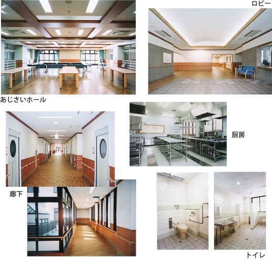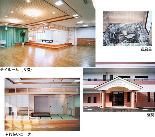 和の空間を設けることにより、利用者の方々に家庭的な親しみやすい雰囲気をあたえます。 安全快適な一般浴室、岩風呂でゆったり気分で快適にご入浴いただけます。
